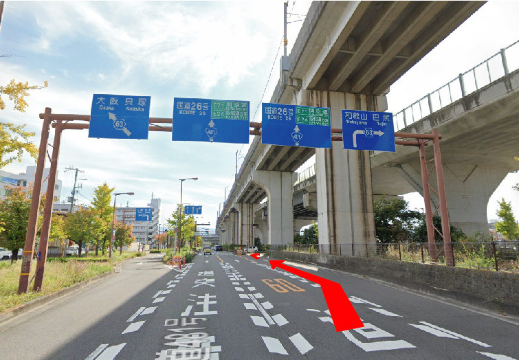 りんくうプレジャータウン」からお越しの方は関西空港線下の道路を東へ