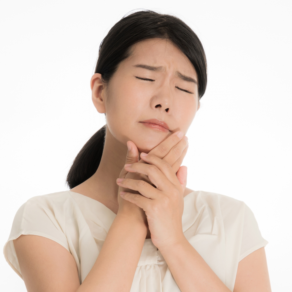歯ぎしり、食いしばりが強い方が、咬筋にボツリヌス菌を注入すると、咬筋の緊張が取れ、症状が緩和します。食いしばりによる肩こり、頭痛なども改善されました。