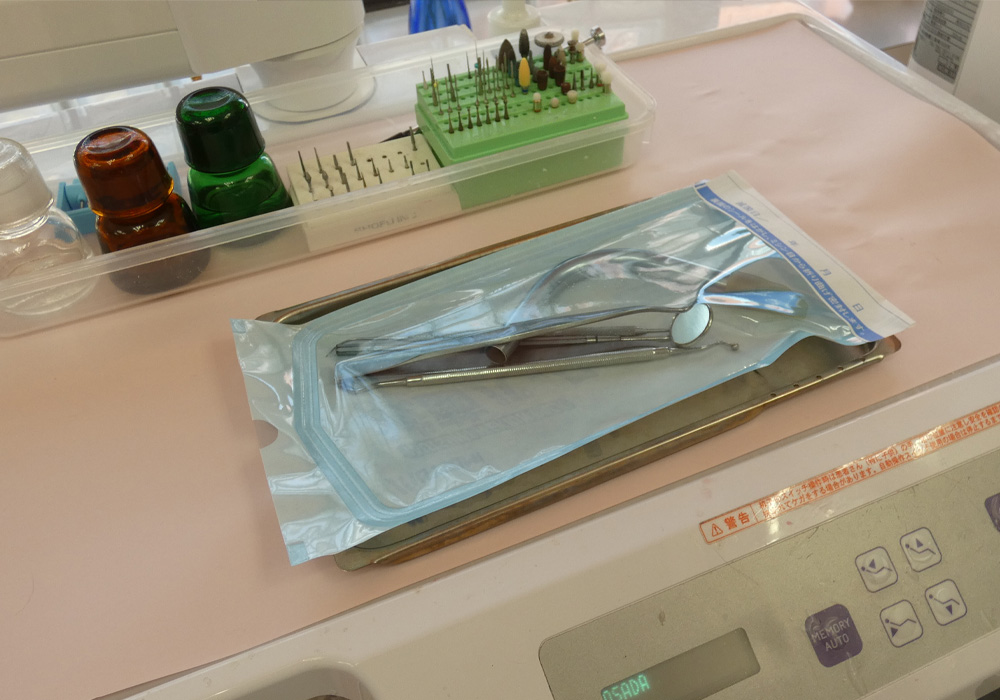 患者さんに安心して治療を受けていただくために、歯科器具類を滅菌パックに入れて管理しています。